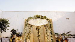 ![]() Clearly, someone had given careful thought to every detail, from the color scheme to the architecture; the ceremonial canopy was covered in greenery and sophisticated lighting created the ambiance of a midnight wedding in an enchanted forest. The screen fluttering in the bre | ![]() | ![]() |