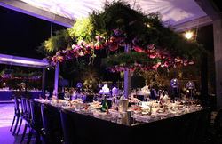 ![]() The reception area was designed in a manner that evoked Europe’s most prestigious clubs with a modern appearance which is untypical for weddings in Israel. The color scheme was black, purple and silver and various style elements were reflected by mirrors carefully incorporated into the overall decor. | ![]() In every corner of the venue, the meticulous planning was evident – from the dancer dressed as a blue bird moving in a slow, sensuous dance in the bar area to the masterpiece gourmet dishes prepared by one of the country’s most acclaimed chefs. Bottles of top quality whisky, brought in from abroad especially for the occasion, stood on the tables to indulge the guests which included top businessmen, politicians and celebrities. | ![]() |